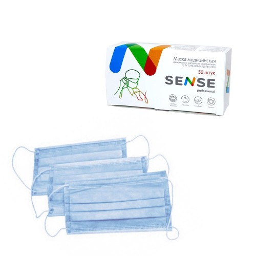 Маски SENSE ГОЛУБЫЕ (50 шт.)